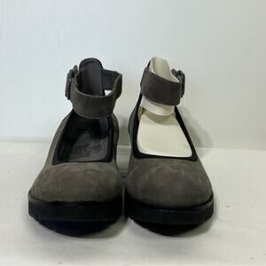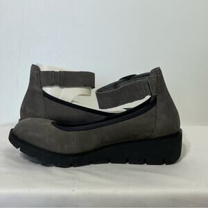Earth Zurich Sion Soft Buck Womens Gray Nubuck Strap Flats 7 NEW