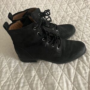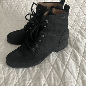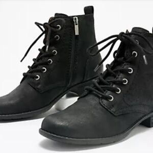 Burnished suede upper, lace-up design, inside zipper. , Back pull tab