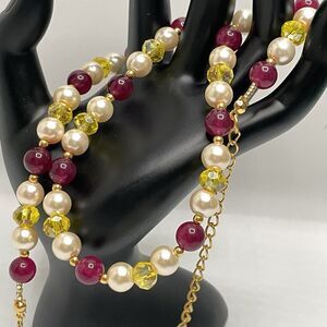 Earth mined Red Gemstone Glass Pearl Yellow Glass Beaded Necklace Statement