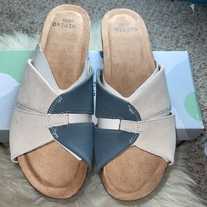 Earth origins Sandals Womens Sz 8 bleu acier multi suede slides Comfort shoe New