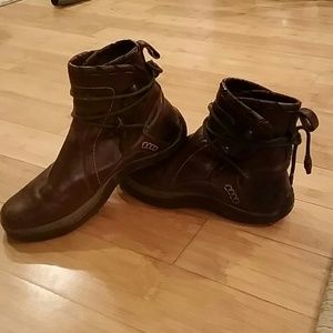 Clean, well loved Earth Shoes. Their negative heel technology will make your back sing! Great for a little shaping in the butt too!!They are worn on the laces but other than that are in great shape. Very cute with skinny jeans