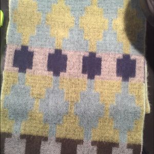 Very warm, multicolored fringe scarf.