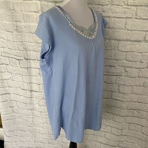 Earth Angels women XL short sleeve scoopneck nightgown w/lace trim blue
