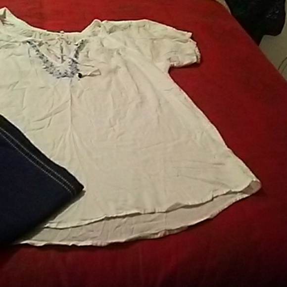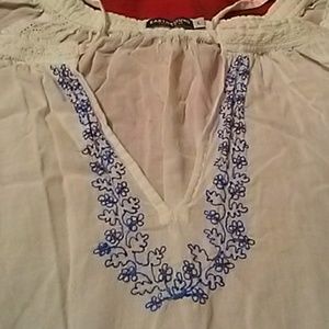Cute cool peasant top with embroidery around the neckline. Short sleeve
