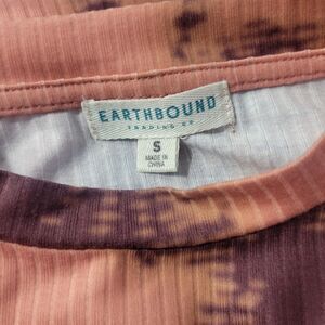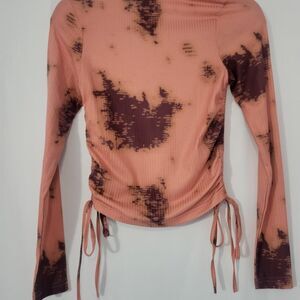 EarthBound Trading Co. boho hippie festival tie dye long sleeve ribbed top. Size S, very fitted with lots of stretch. Cute ruched sides with bow ties (they do not move, they are fixed in place). In pretty Spring peach and Plum colorway.