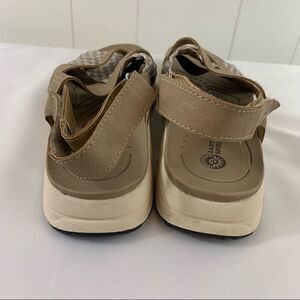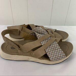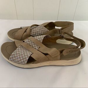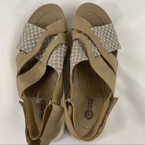 Earth Spirit Wide Woven Sport Band Walking Sandal Tan Metallic Silver Sz 10