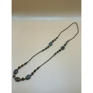 Elevate your natural style with this stunning long beaded necklace, featuring a beautiful blend of green jasper-style stones, faceted bronze beads, and decorative metallic spacers. The earthy palette of mossy greens, deep browns, and subtle reddish undertones makes this piece incredibly versatile—perfect for pairing with both neutrals and bold autumnal colors.