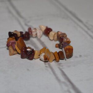 Earth-Tone Mixed Stone Bracelet | 7" Elastic | NWOT | Polished Natural Beads