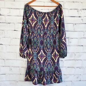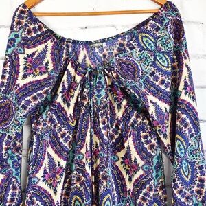 Earthbound 70s Inspired Boho Jewel Tone Paisley Fall Flowy Dress M