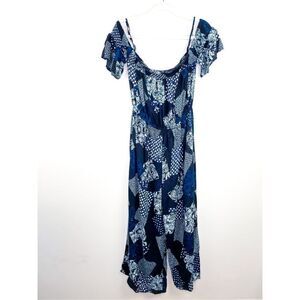 Earthbound Blue Patchwork Off the Shoulder Jumpsuit Size M