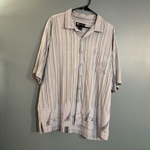 Earthbound Boats Sail Print Button Up Shirt Men's Size XXL 100% Silk Coastal