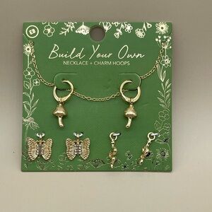Show some love with this earring and necklace set that features a build your own woodland theme that includes charms of mushrooms, snakes, and butterflies.