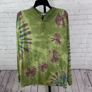Earthbound Green Tie Dye Tunic Long Sleeves Top Size Large