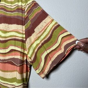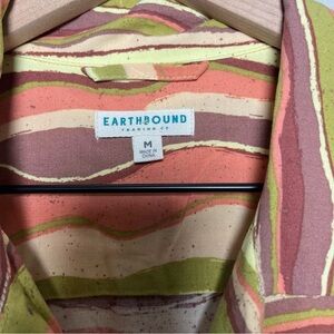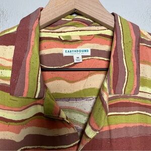 Earthbound Men Camp Shirt Medium Art Funky Stripe Indie Sleaze Goblincore