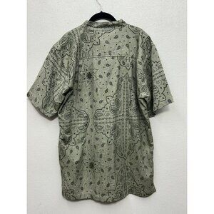 Earthbound Trading Button Up Shirt Mens M Medium Bandana Print Army Green Boho