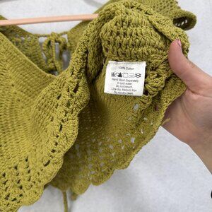 Earthbound Trading Co Blouse Womens Large Green Crochet Cotton Cropped Tie Back Top