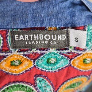 Earthbound Trading Co Size Small Chambray Tie Front Blouse Embroidered Yoke