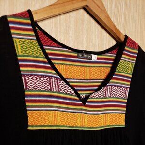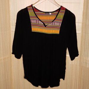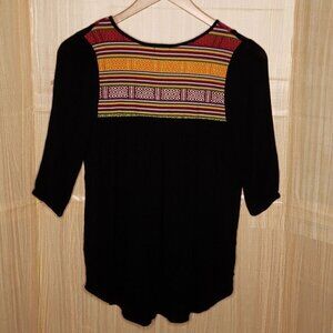 Earthbound Trading Company women’s black boho embroidered gauzy ¾ sleeve top small. Good condition. Measurements are: 16” sleeve, 27” from shoulder to hem, and 18 ½" from armpit to armpit.