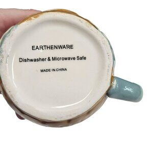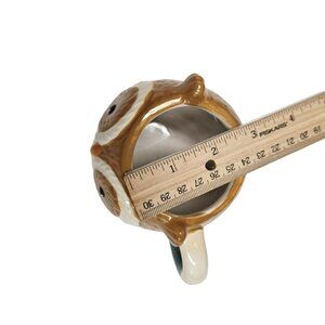 Earthenware Ceramic 3D Hand-Painted Coffee Cup Owl Shape Blue & White Handle