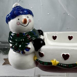 Earthenware Holiday Santa Claus Snowman Christmas Cracker Dish #20639
