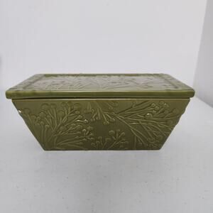 Earthenware, "Let Us Entertain You" NEW, Casserole Dish, Loaf Pan. There is small Chip on the Corner see pictures