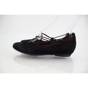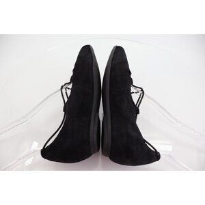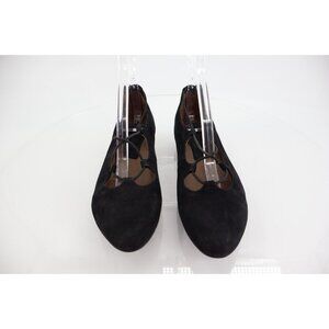 Earthies Essen Ballet Flats 7.5 B Cages Elastic Strap Black Suede Comfy Pointy