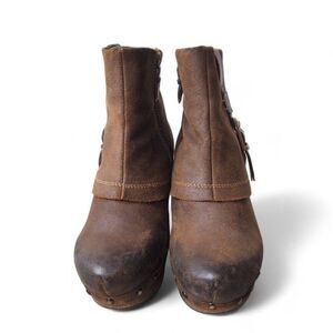 Earthies Lacarne Platform Clog Boots Distressed Brown Leather Women's 6B