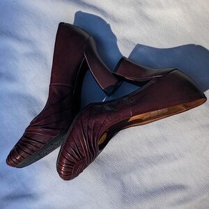 earthies small peep toe heel. genuine reddish brown leather. color name is bitter wine. style name is raynia. size 7.5 b. used good condition only minor marks.