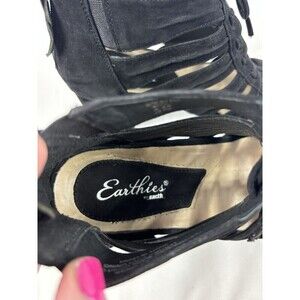 Earthies Saletto Cage Sandals Booties Black Suede 8.5 B Lace Up Arch Support Zip