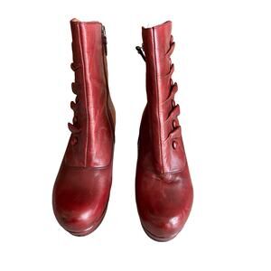 Stunning Earthies Victorian Ruffled leather Ferarra Platform Boots Deep Red Wine, size 9. Good preowned condition. 100% super soft genuine leather. Elegant Pleats and covered button detail up the side of these boots give them a distinctly Edwardian feel with definite drama! Earthies makes feel good footwear that still has style. Cushioned footbed, cupped heel, arch support, leather upper and leather and textile lining, non slip outsole. Full zipper inside for easy on and off. These booties are sure to become your new favorites