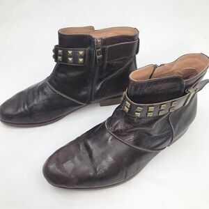 Earthies TREANO Brown Leather Bronze Studded Ankle Boots