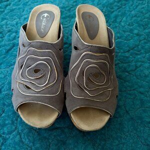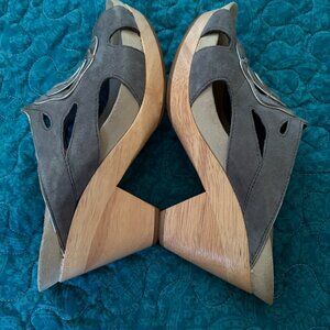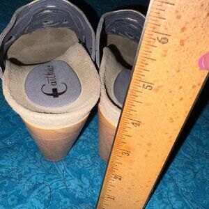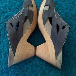 Earthies Tropez Blue Suede Platform Clog Chunky Heel Sandals Size 9, preowned but in excellent condition