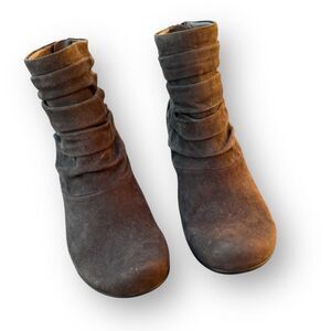 Earthies Vicenza Boot Brown Suede Slouch Zip Up Ankle Bootie Women's size 6.5B