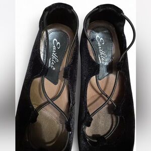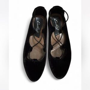 Trendy ballet flats from earthies by earth . Black velvet Essen style , size 7.5. Has some