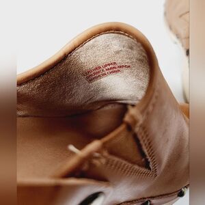 like new worn once, super gorgeous, comfortable the footbed is foam. real leather