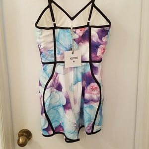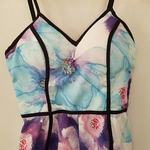 This beautiful multicolor romper is perfect for a night out. Also has a nice padded bra built in. It's a size 6/XS with adjustable straps