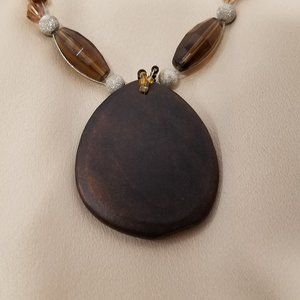 Earth-tone Beaded Pendant Necklace & Pierced Earring Set