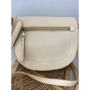 Earthtone Cream Pebbled Faux Leather Crossbody SaddleBag