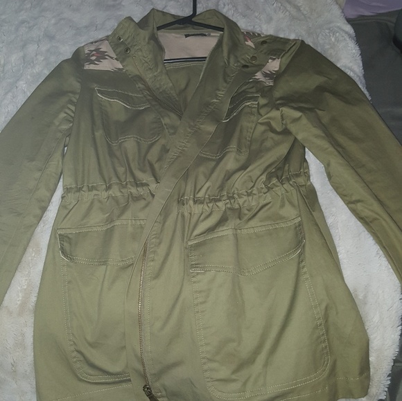 A light army green jacket/blazer. Cinches at the waist. Size med. Too big for me so only worn once.