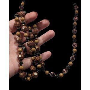 Earthy Black Pink Brown And Gold Tone Speckled Beaded Necklace