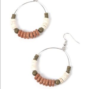 Featuring round and disc shapes, an earthy assortment of white, brown, and green stones glides along a dainty wire hoop for an artisan inspired aesthetic. Earring attaches to a standard fishhook fitting.