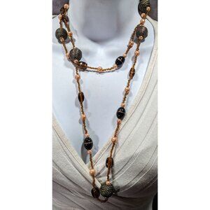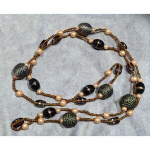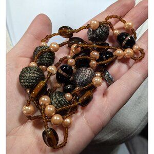 Earthy charm meets elegance in this beaded necklace featuring glass and faux pearls. Perfect for any occasion, it's a versatile accessory to complement various outfits.