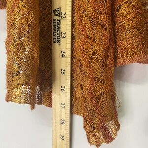 Earthy Orange Crochet Boho Lg Cardigan Asymmetric Open Lapel Slender Long Sleeve