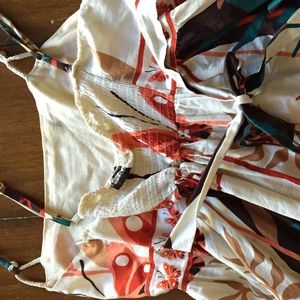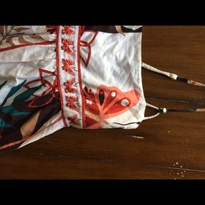 This flowy top is adorable with its earthy pattern and colors. It is fitted at the chest then flows below and has adjustable straps. Perfect with a faded pair of skinny jeans with flip flops or brown boots. Happy to make a custom bundle for you that mixes this with other item(s) in my closet.
