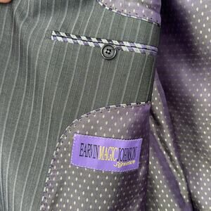 Earvin “Magic” Johnson Signature blazer jacket brown pinstriped super 120’s 48R