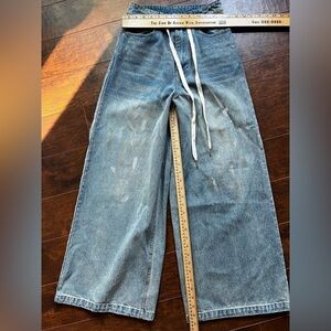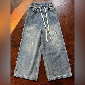 Ease Atelier Ultra Wide Leg Boho High Waisted Distressed Waist Tie Jean Sz Small