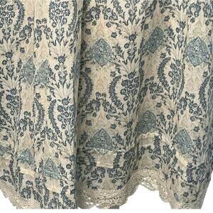 Easel Babydoll Smocked Antique Blue Cream Floral Damask Lace Trim Dress S Boho