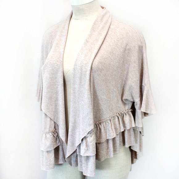 Easel Beige Open Front Ruffle Bottom Cardigan Small