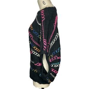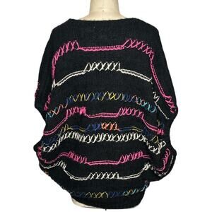 Easel Black Multi Oversized Striped Loose Knit Boxy Boho Sweater Women's M/L
