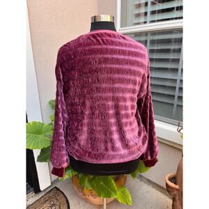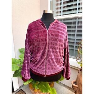 Easel Brand Bomber Jacket Size Large Velvet Burgundy Merlot Rouching Gathers